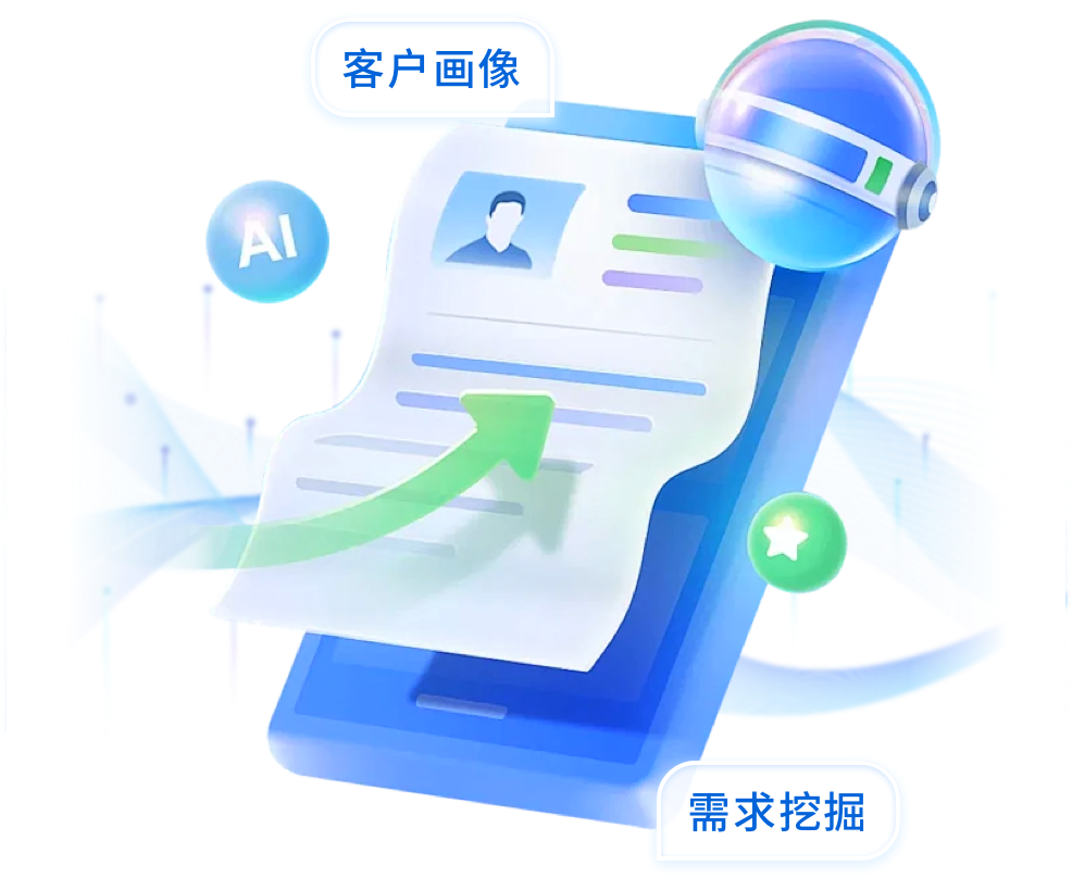 客户心声分析,速览客户画像、正负向反馈和提问内容,提升盘客效率